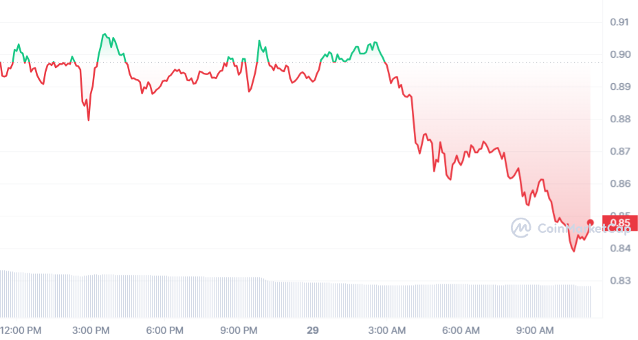 Au final, ENA reste assez proche mais s’en éloigne légèrement à cause de cette nouvelle baisse. Ethena aura perdu 5,57 % et s’échange maintenant sur les plateformes crypto à 0,85 $.