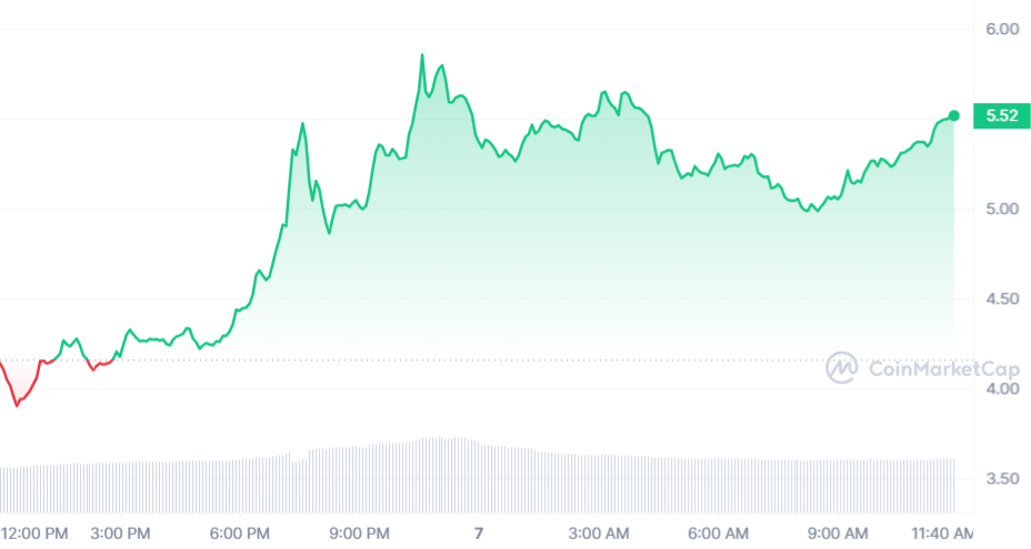 Le cours Helium (HNT) fait un peu moins bien que la veille, mais avec plus de 50 % à son actif hier, difficile de faire mieux aujourd’hui. Au final, le HNT a gagné 34,25 % sur ces nouvelles 24 heures et s’échange maintenant à 5,52 $. Avec presque 100 % en deux jours pour Helium, le bull market est définitivement lancé pour ce jeton.