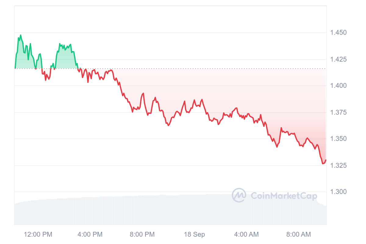 La baisse se confirme heure après heure et fait retomber le jeton IMX de quelques valeureux centimes. La baisse de 6,11 % fait reculer le jeton à 1,33 $.