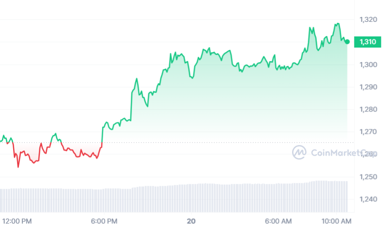 Désormais, le cours MKR semble bien installé au-dessus des 1 000 $ puisque le jeton s’échange à 1 310 $ au moment de rédaction. Cette fois-ci, c’est grâce à une hausse de 3,55 % en intraday.