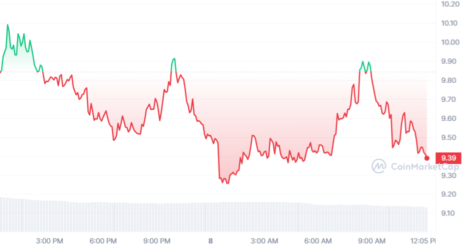 En conséquence, le cours TIA est en baisse de 5,75 %. Au moment de rédaction, la pièce du jeton s’échange à 9,39 $.