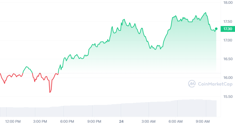 Au final, la pièce de Chainlink est en pleine bourre et arrive à décoller de plus de 8 %. Au moment de rédaction, l’actif s’échange à un prix de 17,41 $.