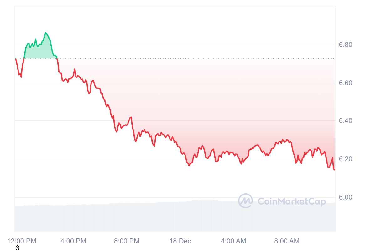 Sur les dernières 24 heures, le NEAR a connu une chute continue qui le mène finalement à un prix de 6,15 $. La baisse se solde par un retracement de 8,39 %.