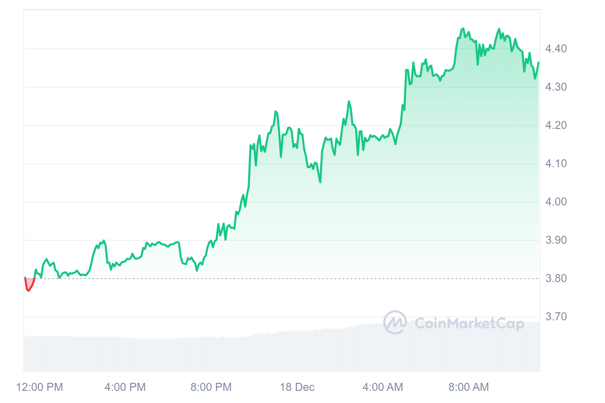 Sur la journée, le jeton MOVE est donc allé grapiller des centimes, avec une hausse régulière de 4,65 %. Désormais, l’actif est valorisé à un prix de 0,647 $.