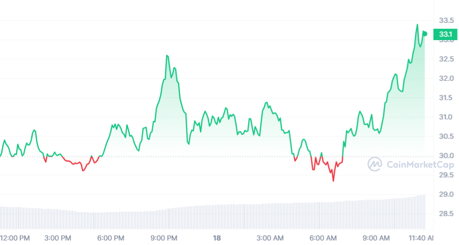 En hausse de 9,65 % sur la journée, le cours Injective (INJ) se maintient à un très haut prix (33,10 $). Le dernier ATH en date du 15 décembre est peut-être bientôt prêt à bouger une nouvelle fois. Une formule qui cartonne sur ce mois de décembre 2023.