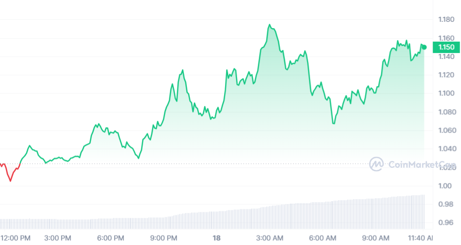 Grâce à une hausse progressive plutôt qu’éclair, le cours STX arrive à se maintenir à un très haut niveau journalier. Son gain de 12,01 % permet à l’actif d’atteindre les 1,15 $.