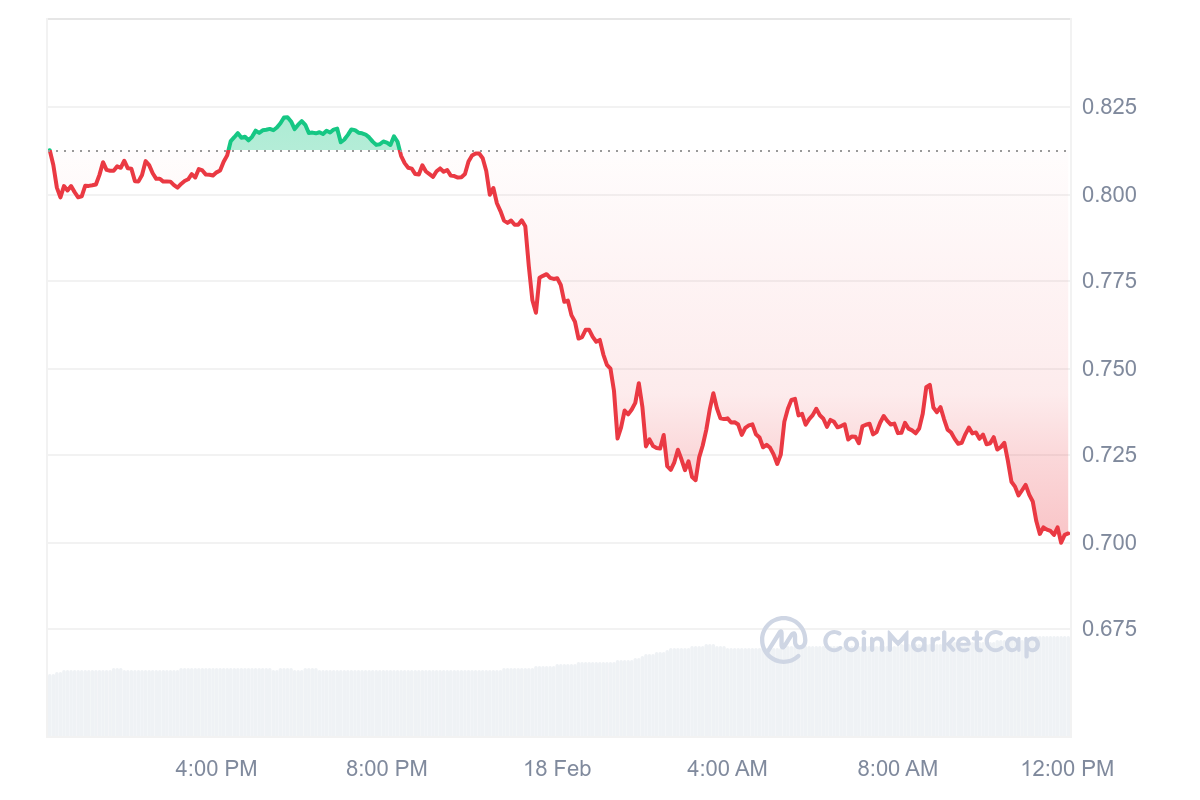 Jupiter (JUP) est une des cryptomonnaies qui a fait mainmise sur les flops du jour avec un prix d’échange de 0,70 $ en raison d’une baisse de 13,49 %.