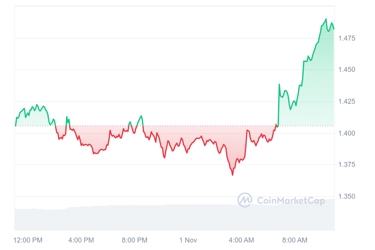 En switchant du rouge au vert, le cours du jeton de Mantra, OM, remonte vers ses anciens sommets et se rapprochent déjà, dès le début du mois, des anciens sommets. Avec cette hausse de 4,96 %, le prix de chaque pièce OM se rapproche des 1,50 $.