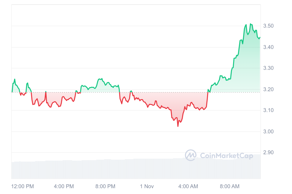 Le cours du RAY fait encore des prouesses avec un gain de 6,39 % sur les dernières 24 heures. Au moment de rédaction, notre jeton phare de l’écosystème Solana a un prix de 3,44 $.