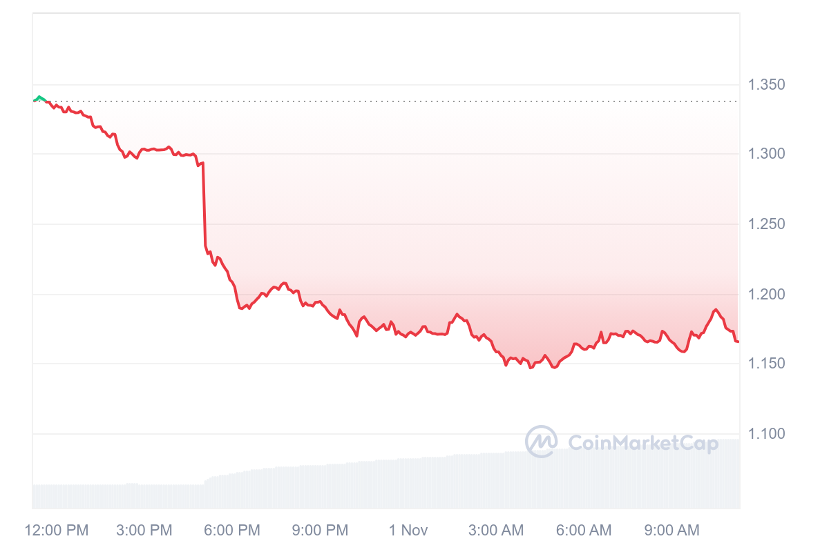 SponsoredLe cours IMX est malheureusement tout déconcerté avec une grosse chute de 12,96 %. En conséquence, le prix du jeton retombe à 1,17 $.
