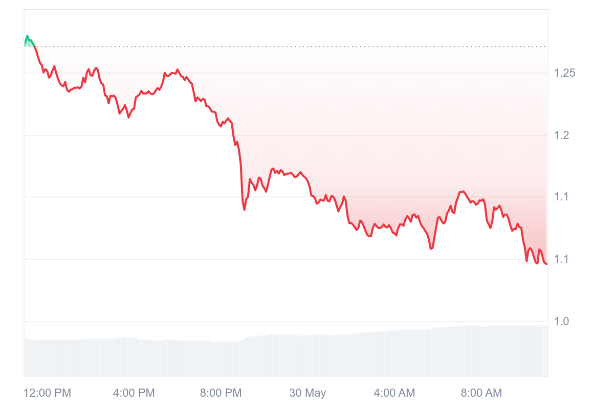 Cette fois-ci, les pertes sont encore une fois supérieure à 10 % avec un retracement de 14 % qui maintient tout juste le prix du jeton Fartcoin au-dessus du dollar.