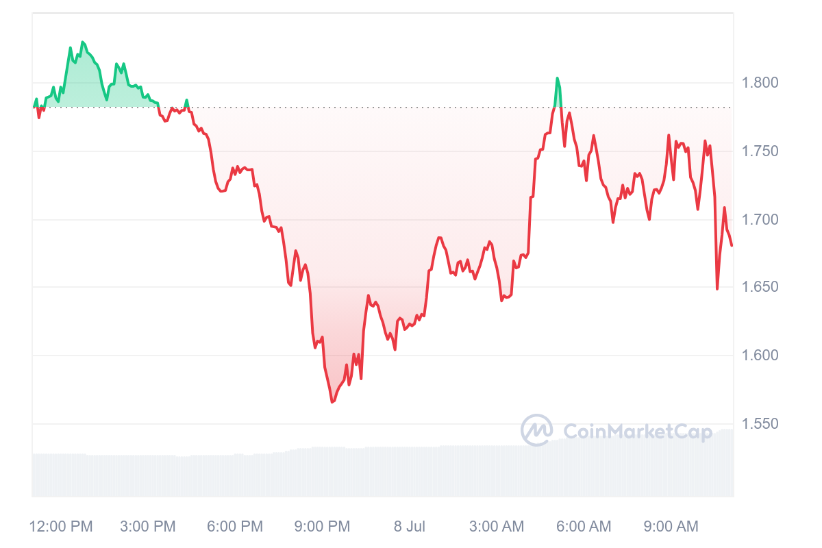 Au moment de rédaction, le cours du WIF est en train d’accuser un retracement de 5,64 % avec un prix actuel de 1,68 $.