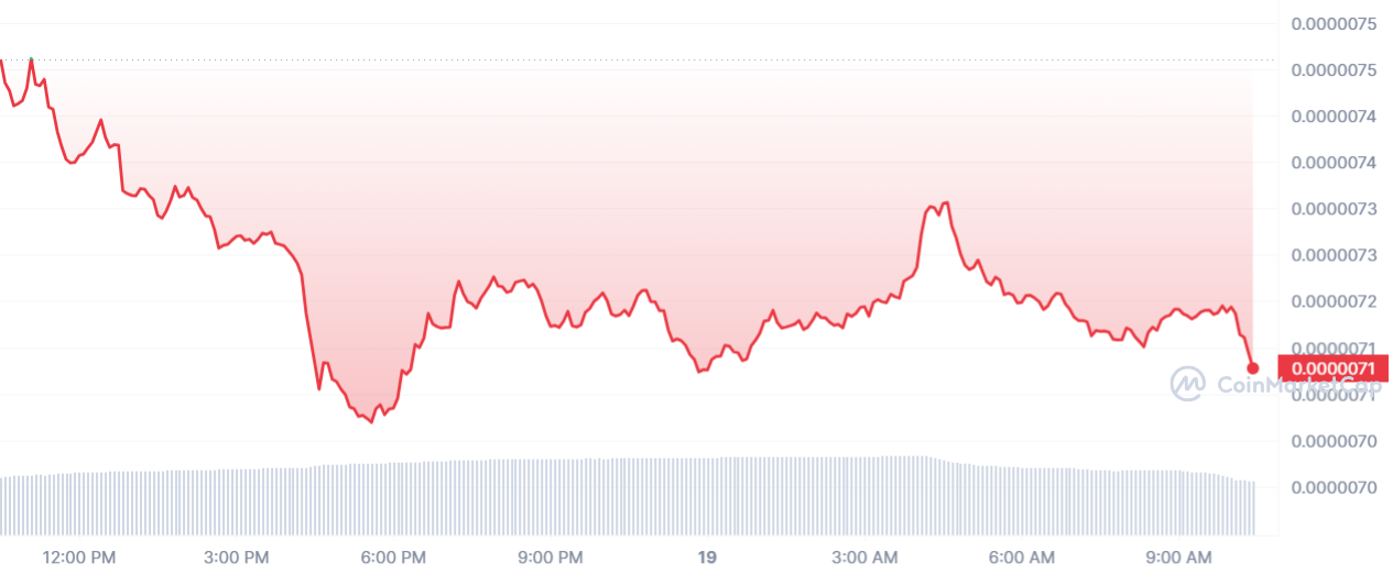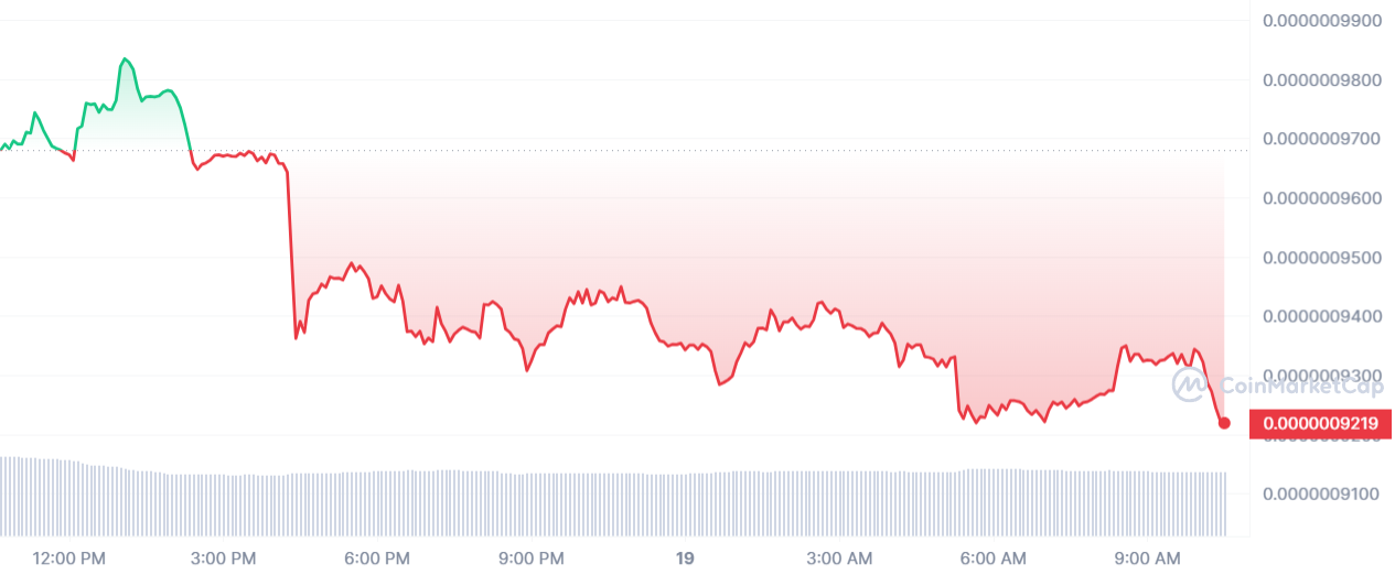 Ainsi, le cours PEPE occupe la troisième place du jour grâce à une performance négative de 4,25 % sur la journée. Désormais, le jeton a un prix de 0,00000092 $