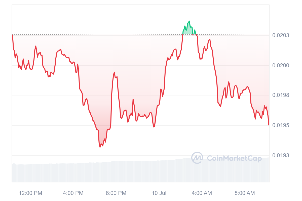 SponsoredEn raison de toutes ces baisses, le cours du FLR est en train de chuter et fait peine à voir. Au moment de rédaction, le Flare a nouvellement perdu, avec une baisse de 4,12 % qui fait retomber le FLR à 0,0195 $.