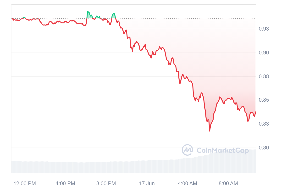 Cela fait déjà quelques jours que le cours du STRK a perdu le dollar, et le jeton est en train d’aller plus bas. La pièce de Starknet s’échange actuellement à 0,83 $.