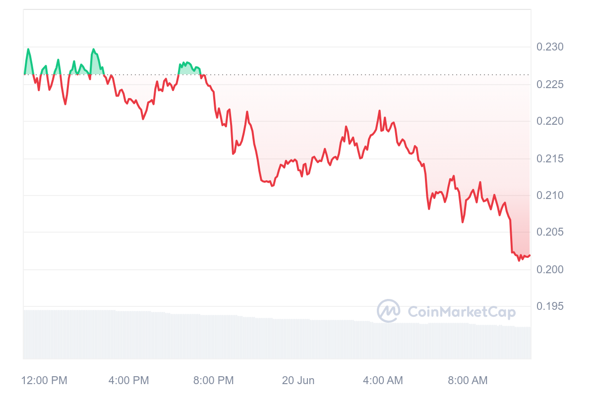 SponsoredSur la journée, le cours du ZK est en baisse de 10,87 %. En conséquence, l’altcoin chute à un prix de 0,20 $.