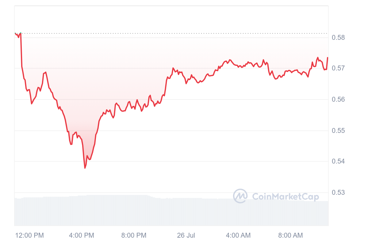 Grâce à un atterrissage contrôlé, EOS arrive à se maintenir à 1,26 % de baisse. Le jeton s’échange désormais à 0,57 $.