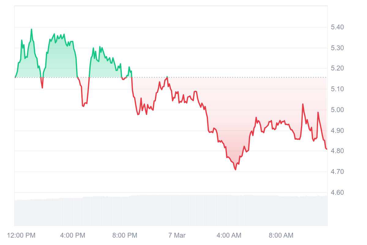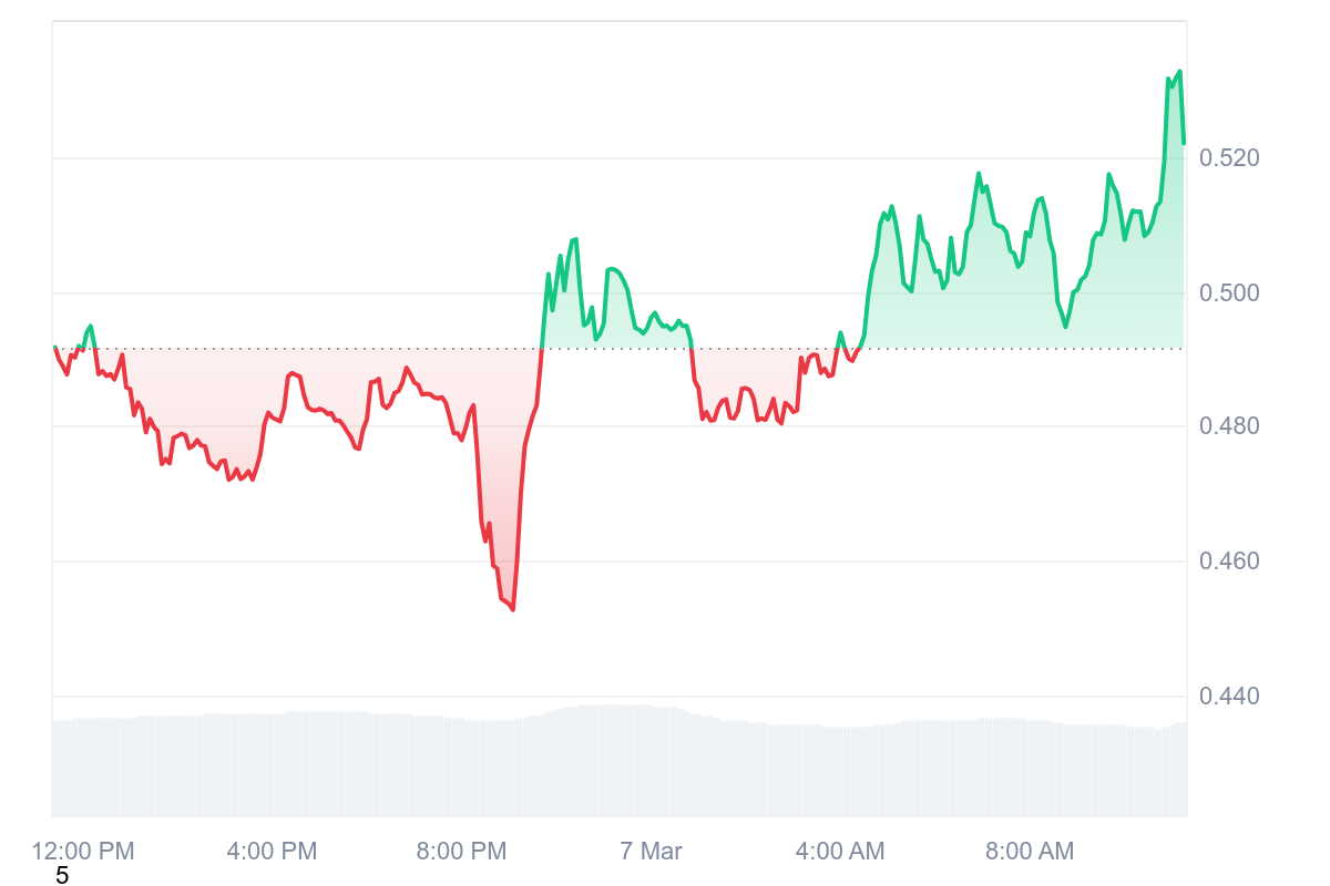 Sur la journée, le cours du MOVE natif de Movement arrive à se revaloriser avec un gain de 6,83 %. Ce n’est pas si impressionnant, mais tout de même, ça permet de dépasser les 50 centimes (0,525 $).