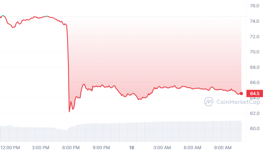 Le cours LTC en désespère sans doute plus d’un aujourd’hui avec une perte de valeur impressionnante. En effet, puisque le jeton perd 13,40 % en 24 heures et s’échange à 64,50 $.