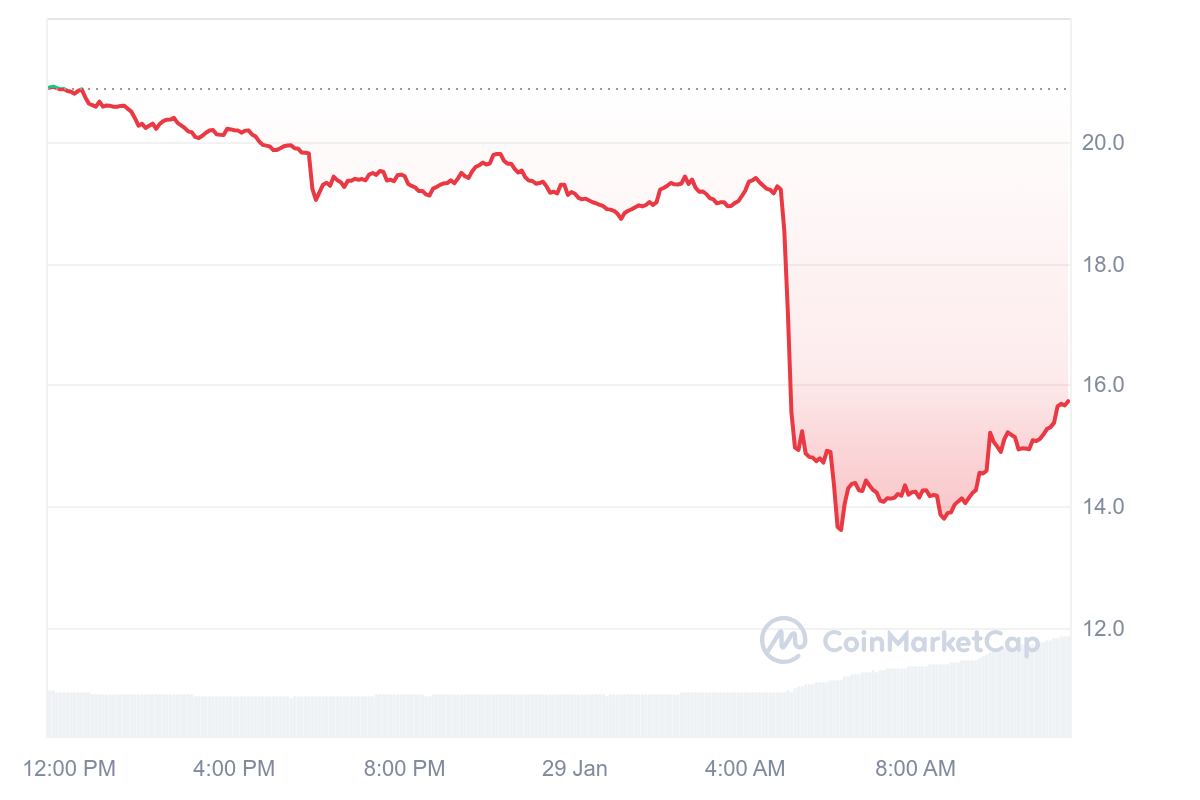 Le cours du DEXE a perdu en puissance avec une chute invraisemblable qui est survenue au cours des dernières 24 heures. Le résultat, très néfaste, fait retomber DEXE à 15,73 $ en raison d’une perte de 24,70 %.