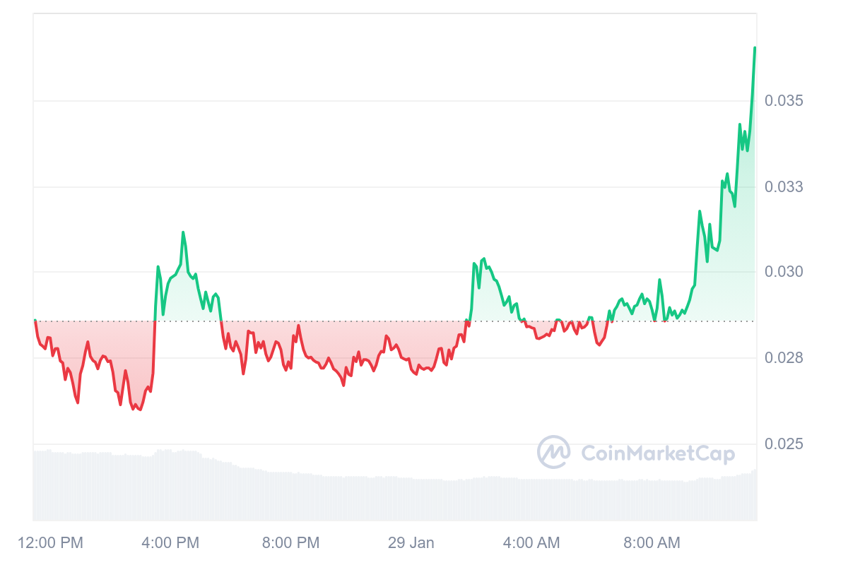 Le XCN a tronqué sa tenu et a des allures bien plus printanières. Le gain journalier est impressionnant, avec un regain de forme de 28,68 % pour le XCN. L’actif se négocie actuellement à 0,0365 $.