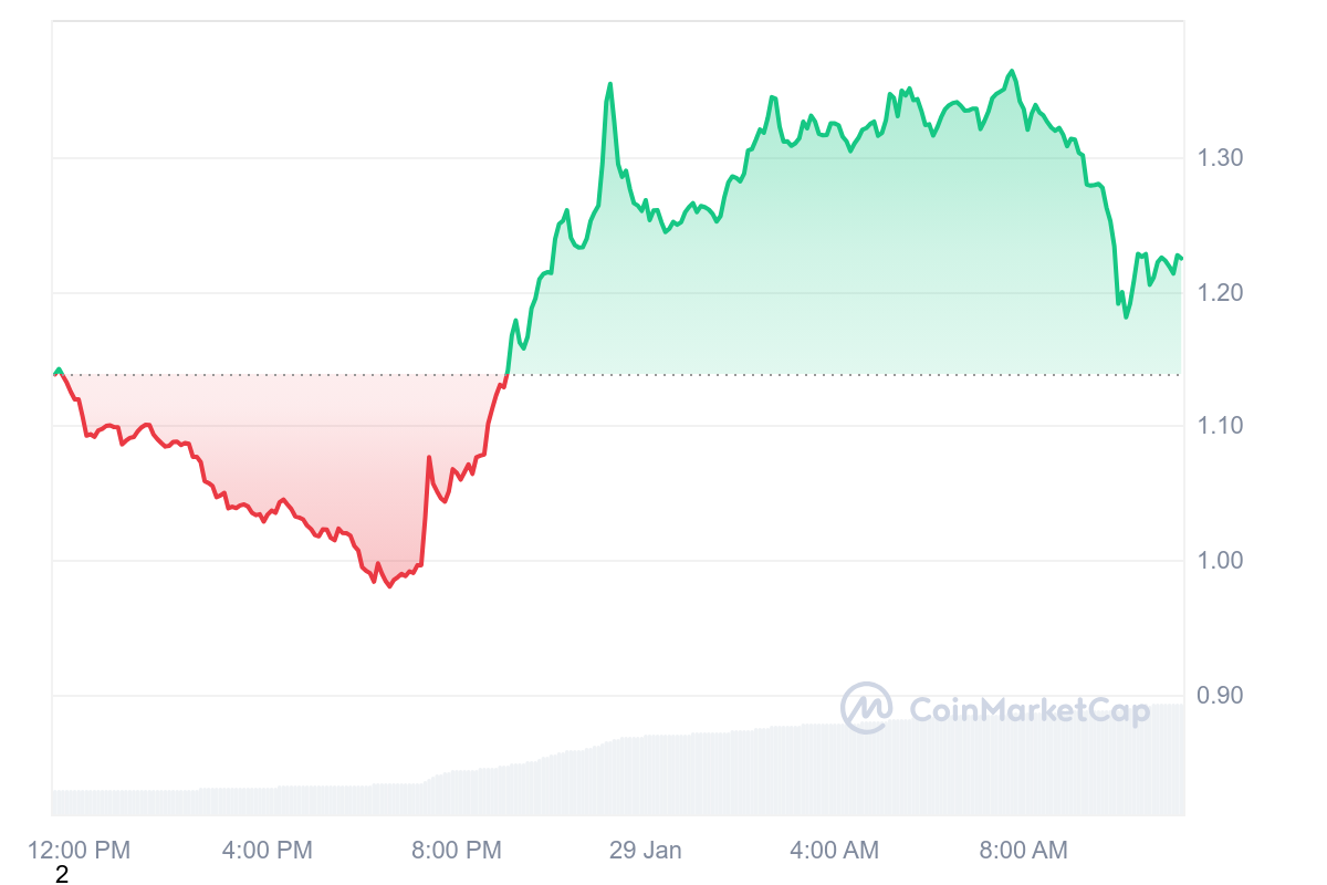 Finalement, le “retour” de la hausse du côté du WIF est de 6,75 % ce mercredi, qui permet à l’actif de remonter à 1,22 $. Le prix maximum atteint à la journée a dépassé les 1,30 $.