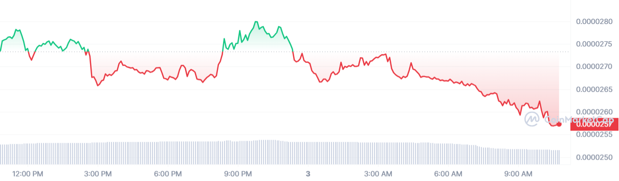 Le cours PEPE a finalement perdu 8,67 % de sa valeur et s’échange maintenant à 0,00000073 $. Cela commence à faire beaucoup de zéros après la virgule.