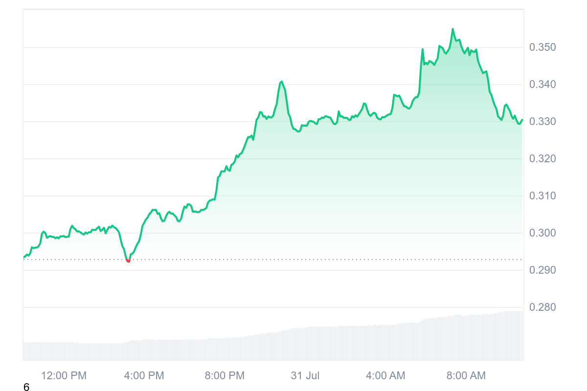 Le cours du S est très positif pour ce jeudi avec des gains alors que le marché gagne peu et un jeton qui se négocie désormais à 0,33 $ grâce à cette poussée de 11,19 %.