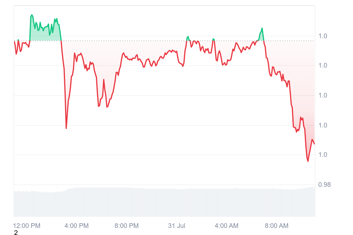Ethena recule en cette fin de journée mais sur les dernières 24 heures comme sur le reste du mois de juillet, c’est la hausse qui prime. En effet, ENA a été un des altcoins les plus performants du marché crypto lors du 7ème mois de l’année après un bond de plus de 140 %.