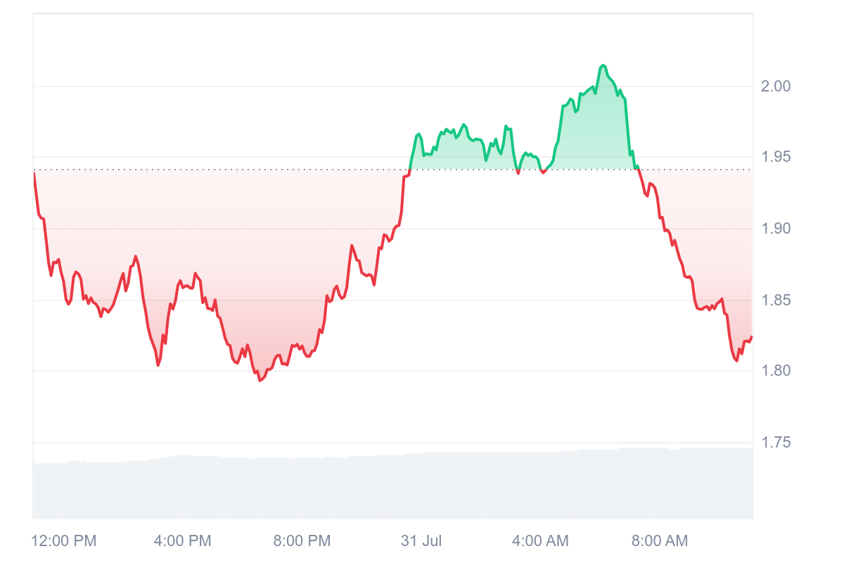 Sponsored SponsoredLe cours du SPX n’avance pas, il recule une nouvelle fois et accuse une perte de vitesse de 4,64 %. Au moment de la rédaction, la pièce se négocie à 1,82 $.