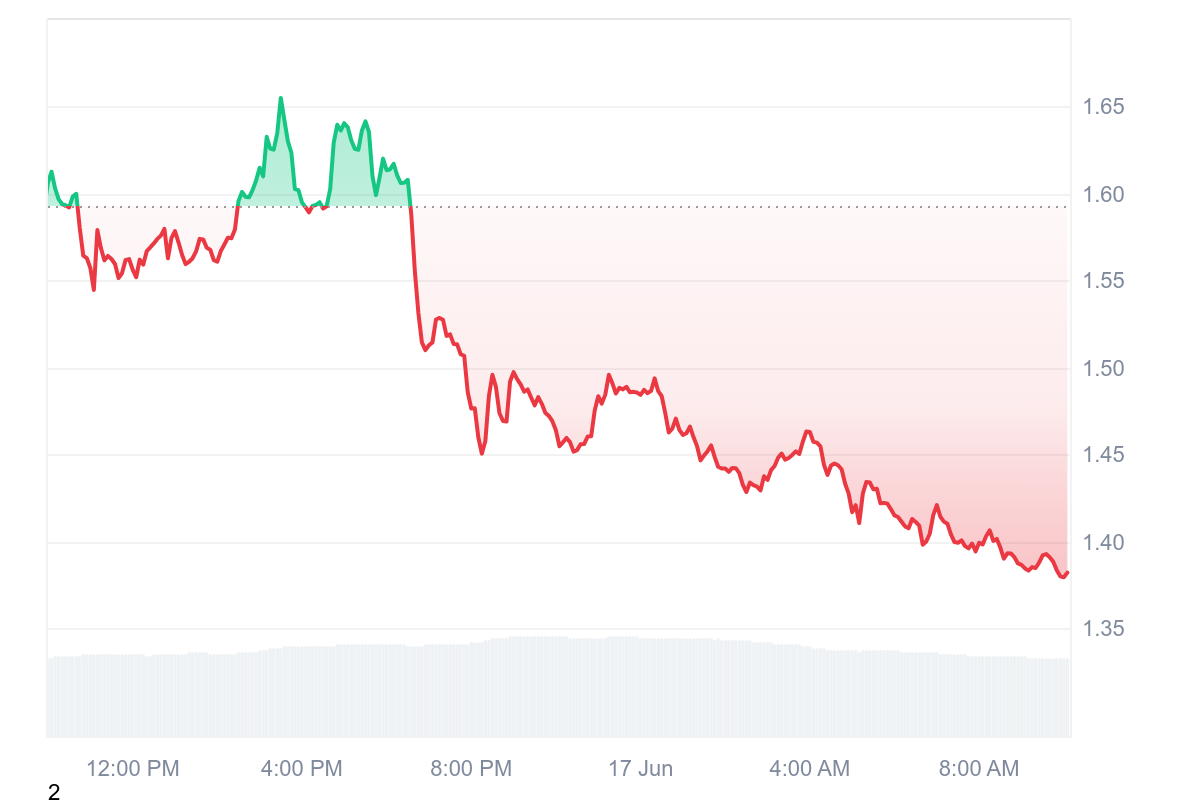 Sur les dernières 24 heures, c’est donc une baisse qui est au programme pour le SPX et même une très forte baisse. Le jeton a mal dormi et s’est réveillé avec une baisse de 14,15 % qui fait retomber le prix à 1,38 $.