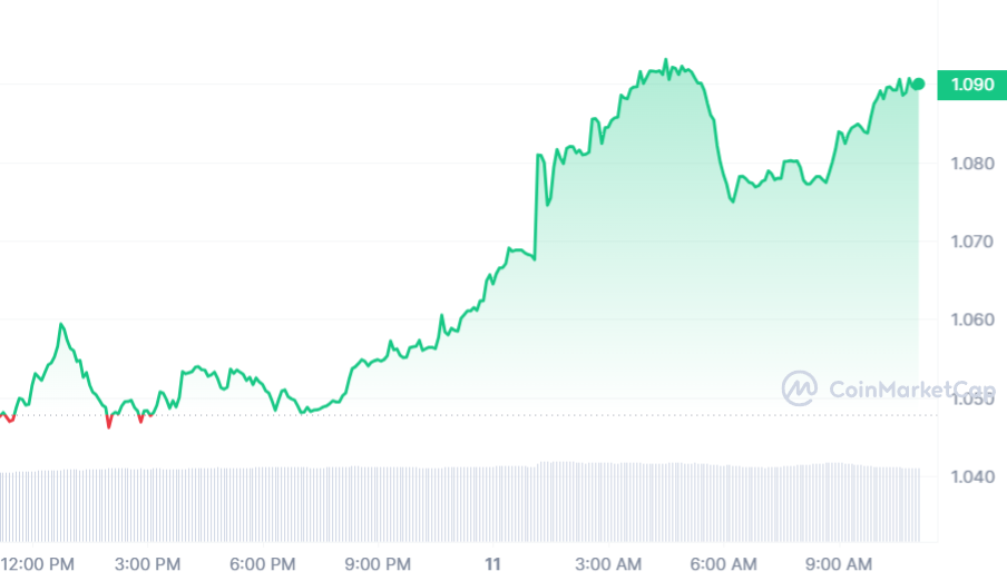 Le cours RUNE signe son retour en gagnant 3,57 % sur la journée. Au moment de rédaction, le jeton a un prix de 1,09 $.