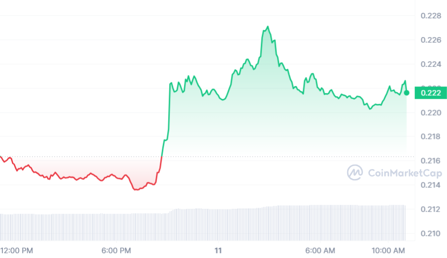 Le cours BAT s’échange actuellement à 0,222 $ grâce à cette hausse de 2,36 %.