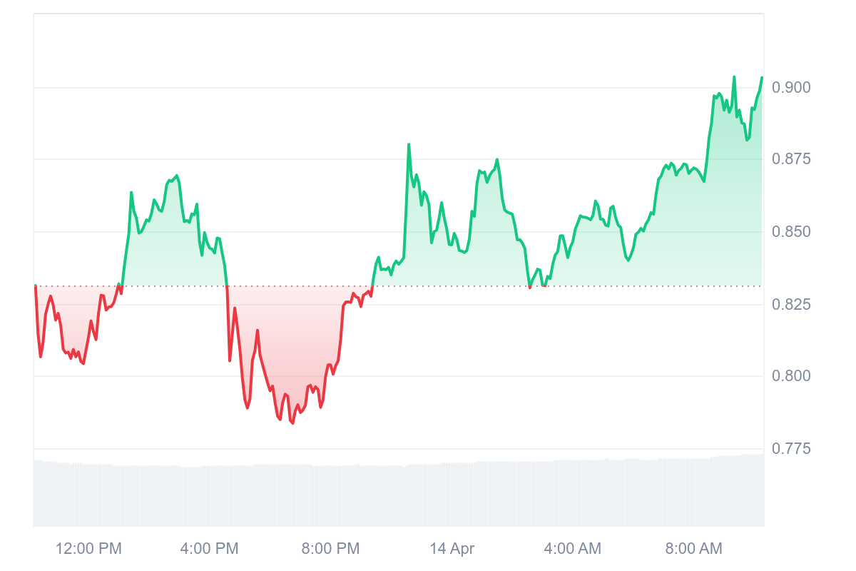 Le FARTCOIN n’a pas besoin d’altcoin season pour briller et gagne une fois de plus 10 % en une seule journée. Avec ses 11,01 % de hausse, le jeton se rapproche à grand pas du dollar (0,91 $). Bientôt, le retour à l’ancien ATH pourra enfin être envisagé.
