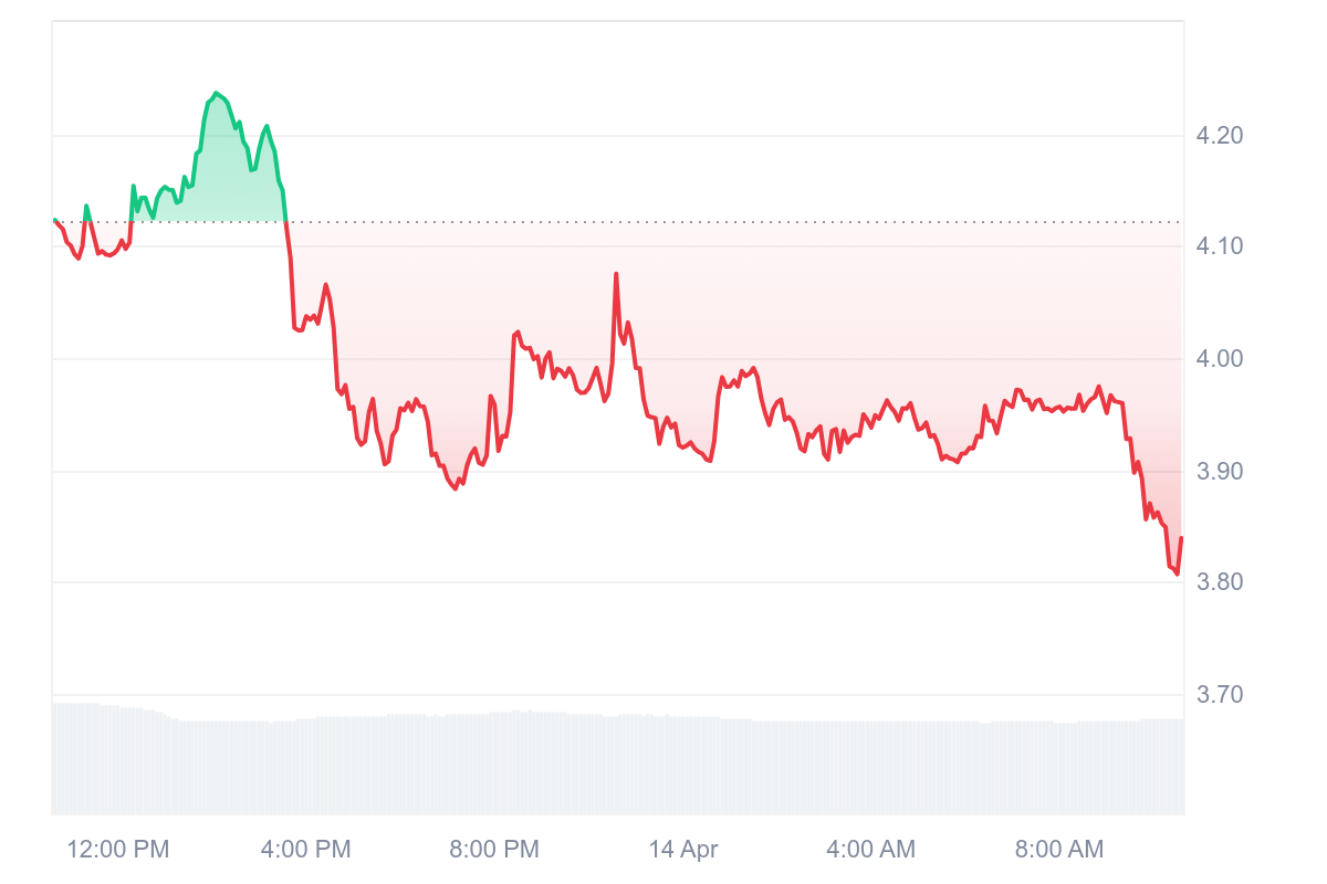 La pièce d’IP est malheureusement de retour dans les flops du jour avec un glissement de 6,86 % qui fait dériver le prix de l’actif sous les 4 $ (3,83 $).