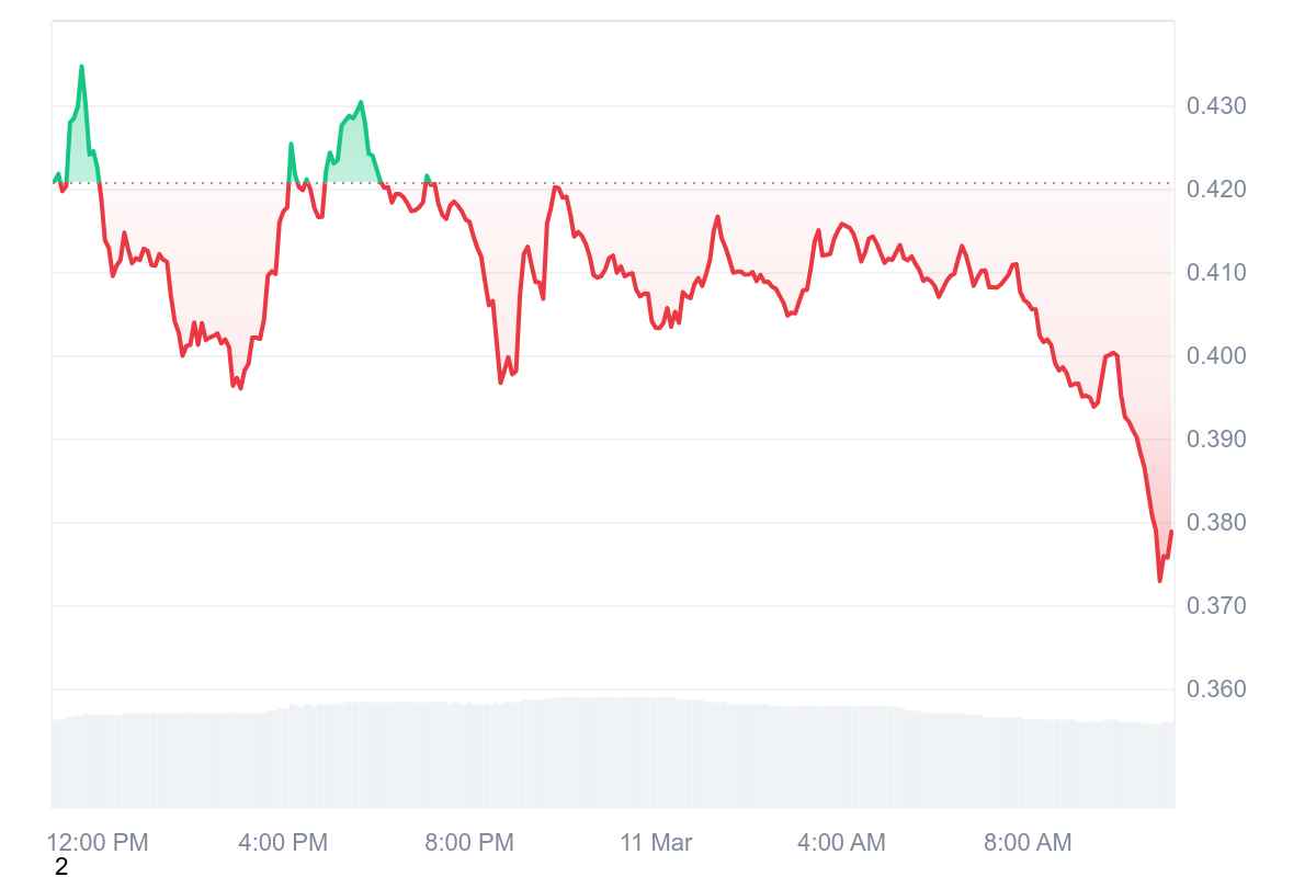 Malheureusement, les difficultés sont une fois de plus au rendez-vous pour ENA avec une retracement impressionnant qui fait perdre finalement 9,55 % au prix du jeton. Ce dernier perd les 40 centimes d’ailleurs avec un prix d’échange fixé à 0,378 $.