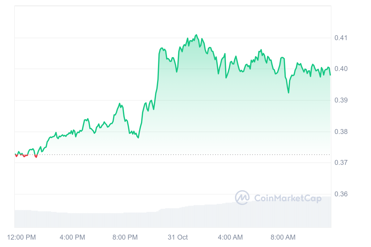 Le PYTH a connu une hausse progressive de sa valeur avec une évolution positive de 6,83 % sur la journée. Désormais, l’actif est négociable à un prix de 0,398 $.