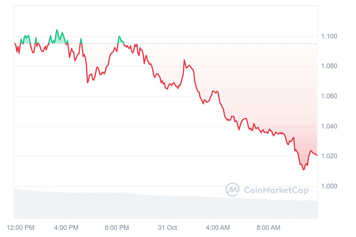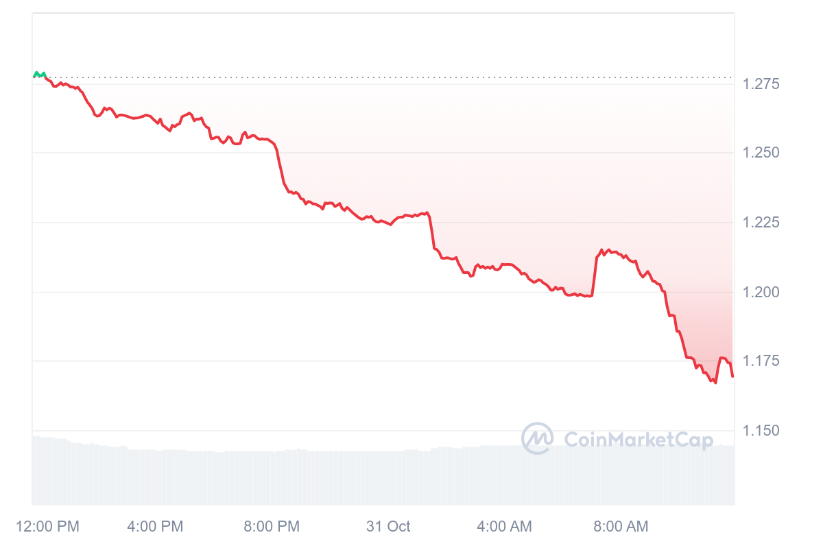 SponsoredSur les dernières 24 heures, AERO a en tout cas régulièrement chuté. Le jeton s’échange désormais à 1,17 $ après ce retracement de 8,53 %.