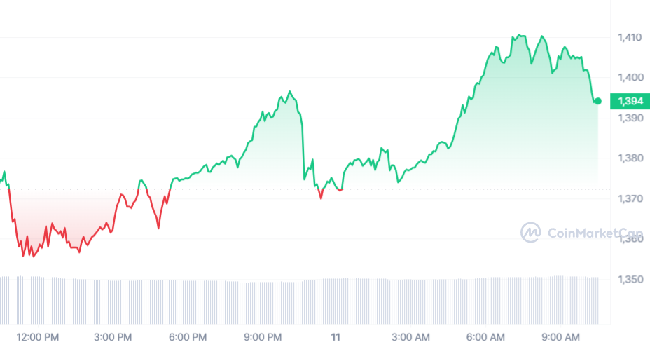 Maker ne vole plus aussi haut que la semaine passée, mais reste à des niveaux très intéressants. D’ailleurs, malgré tout, la pièce MKR conserve une fois de plus ses gains avec une hausse de 1,43 % et un prix de 1 394 $.