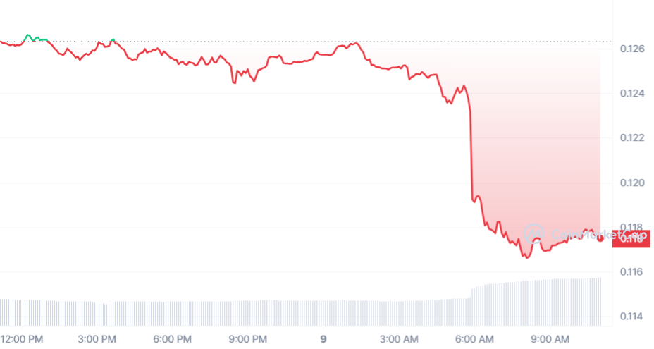 Le cours CFX connait une baisse sévère de 6,86 % sur ce début de semaine, qui se concrétise par une baisse de valeur jusqu’au 0,117 $.