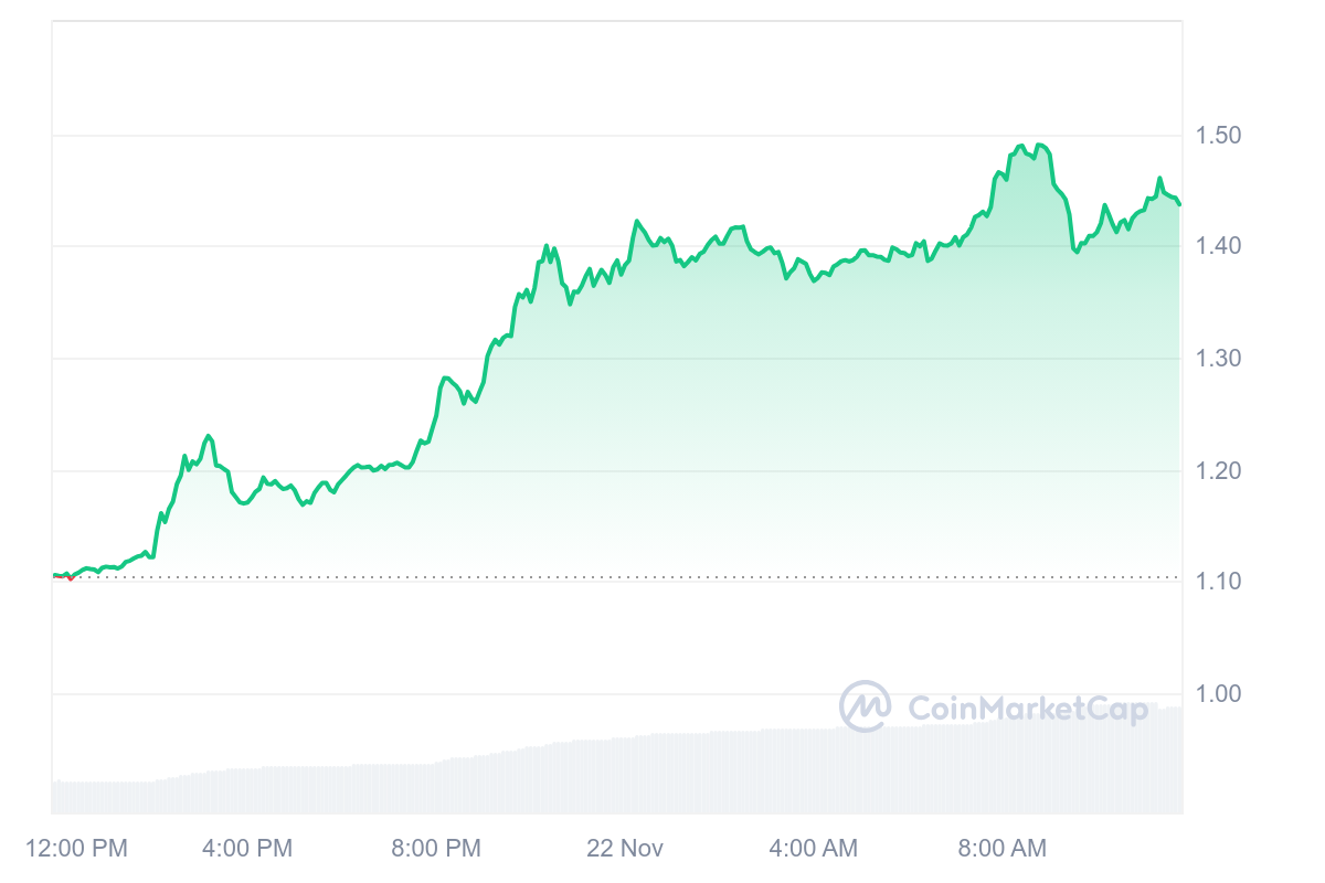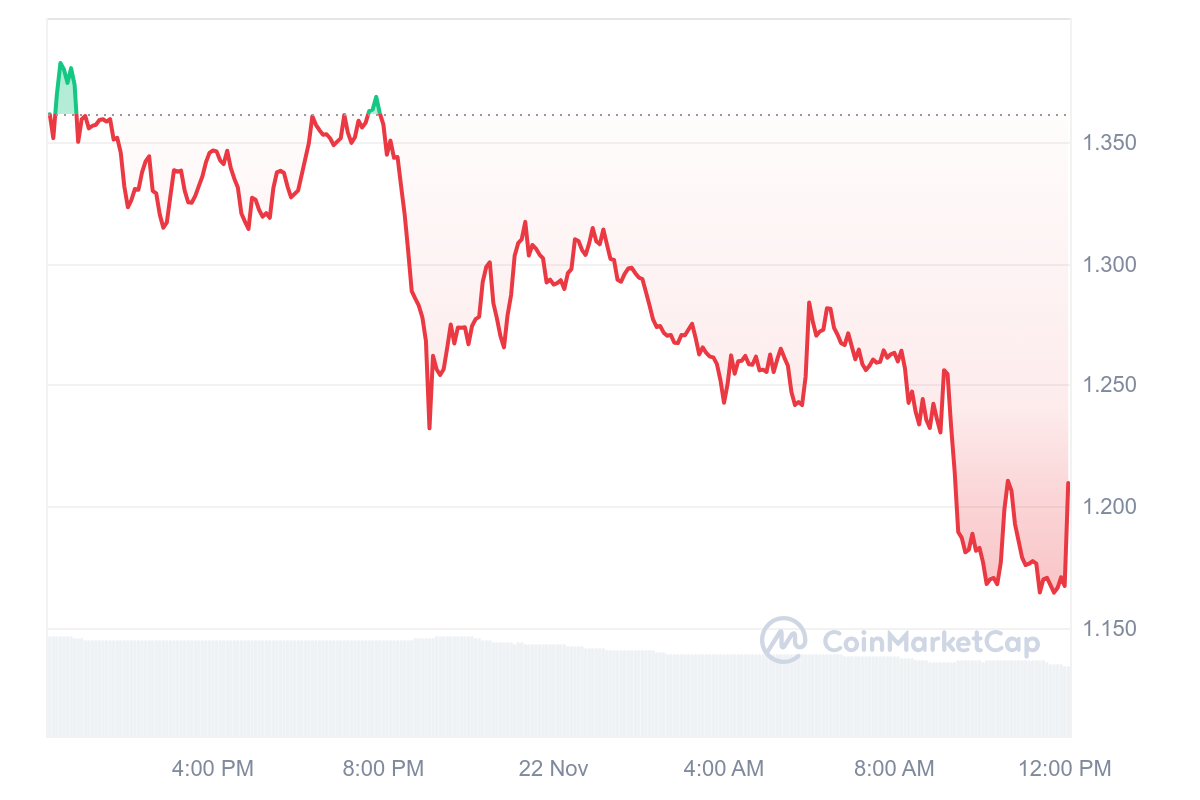 Le jeton PNUT perd en valeur ce vendredi à hauteur de 11,48 %. Désormais, l’actif se négocie sur les principales plateformes d’échange à 1,21 $.