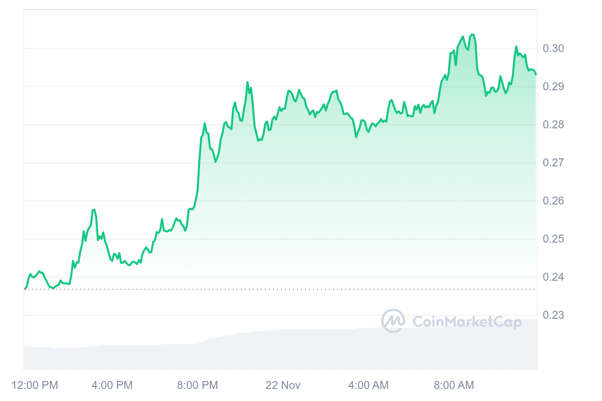 Le XLM est en hausse de 24,14 % sur la journée et avec toutes ces hausses du mois de novembre, il devrait bientôt sécuriser les 30 centimes.