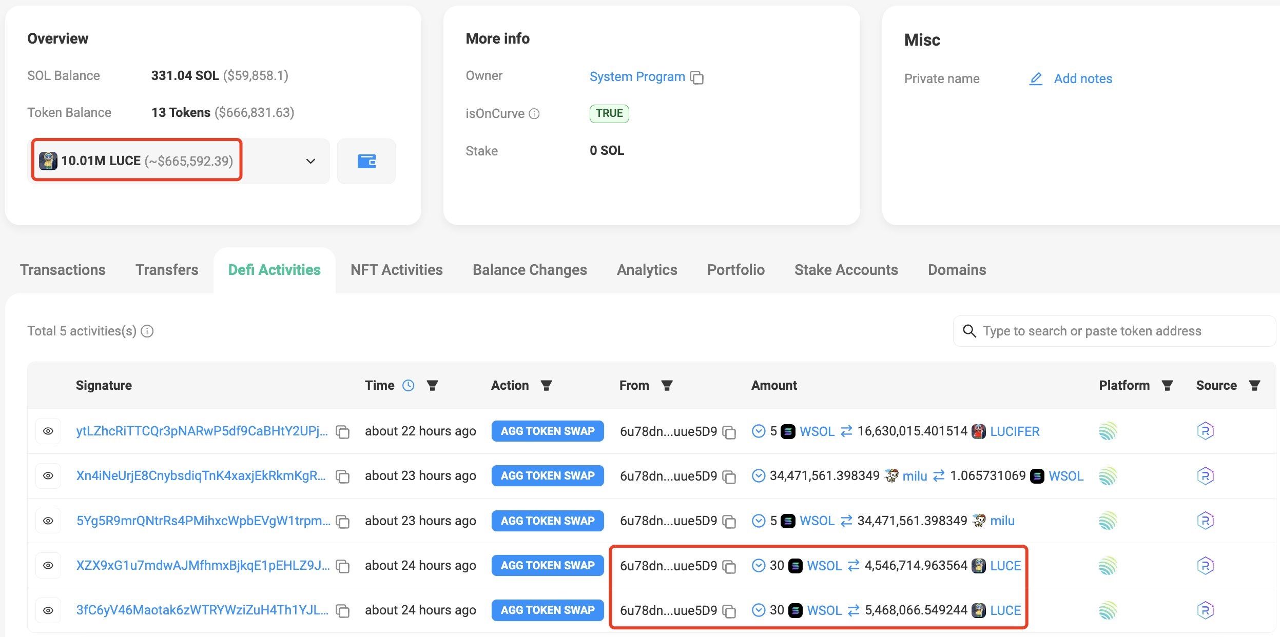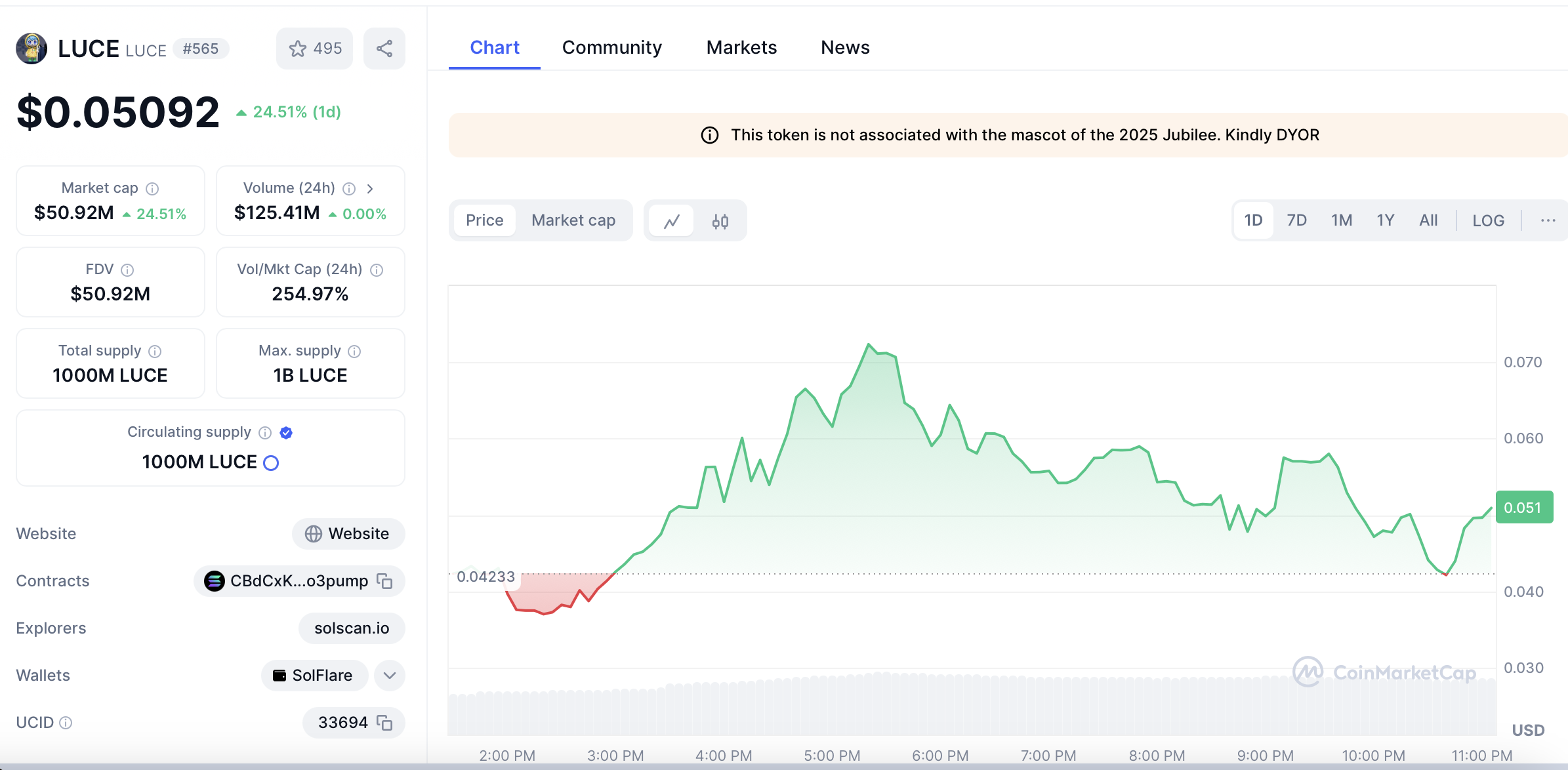 Concrètement, cet investisseur a vu ses fonds passer de 10 400 $ à 666 000 $ en une journée. La majorité de ces gains provient de la crypto LUCE, dont il détiendrait environ 10 millions d’unités. D’après les données de CoinMarketCap, le LUCE a été lancé sur le marché il y a moins de 24 heures. Tout semble indiquer que ce trader pourrait être un insider ou quelqu’un de très proche du projet LUCE.