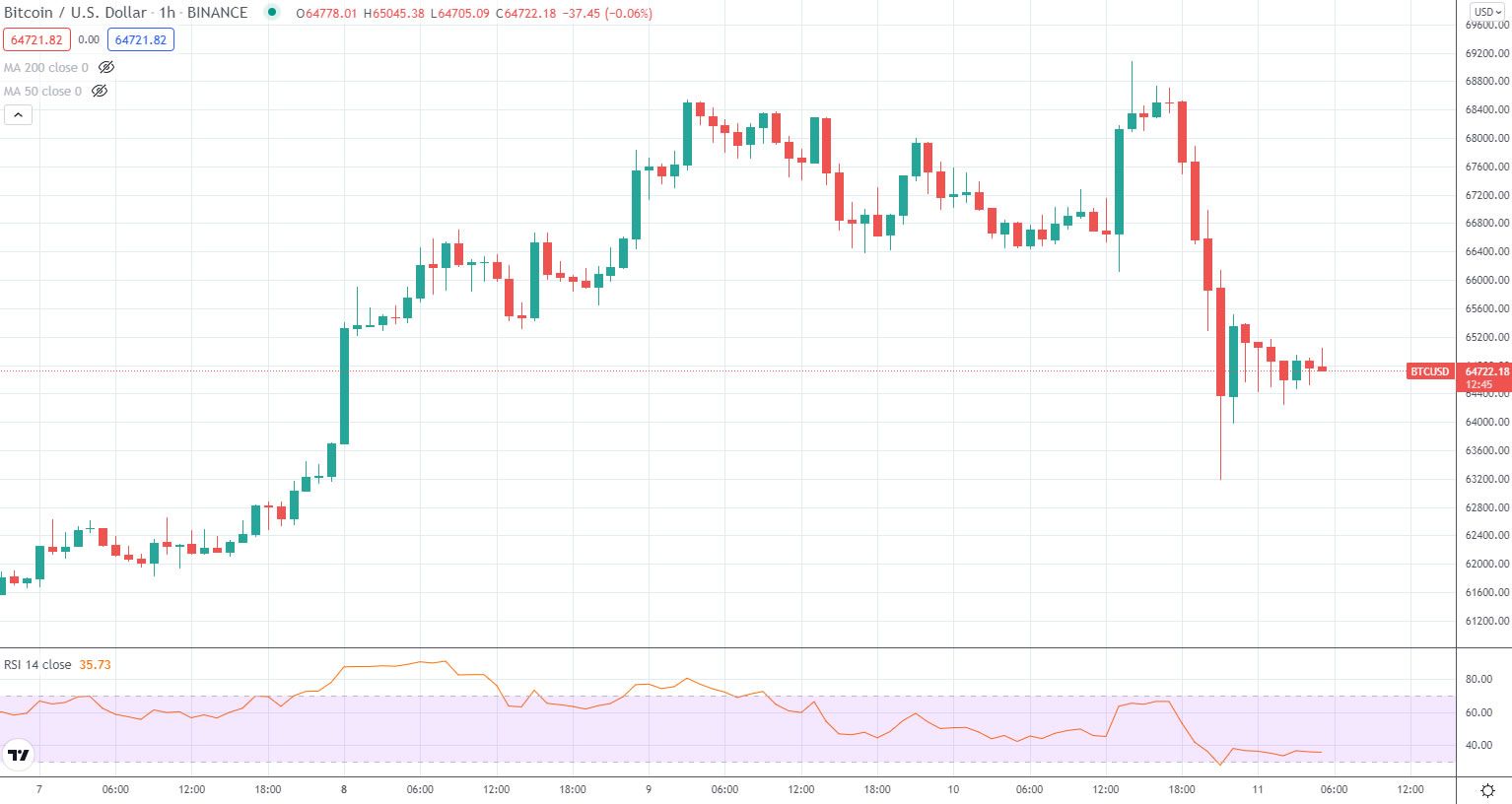 Le 10 novembre, Bitcoin a perdu plus de 5 000 $ en quelques heures avant la clôture. Après avoir atteint un nouveau sommet historique de 69 000 $, l’actif numérique N°1 au monde a chuté de 8,4% pour se situer à près de 63 200 $, selon les données de Binance.