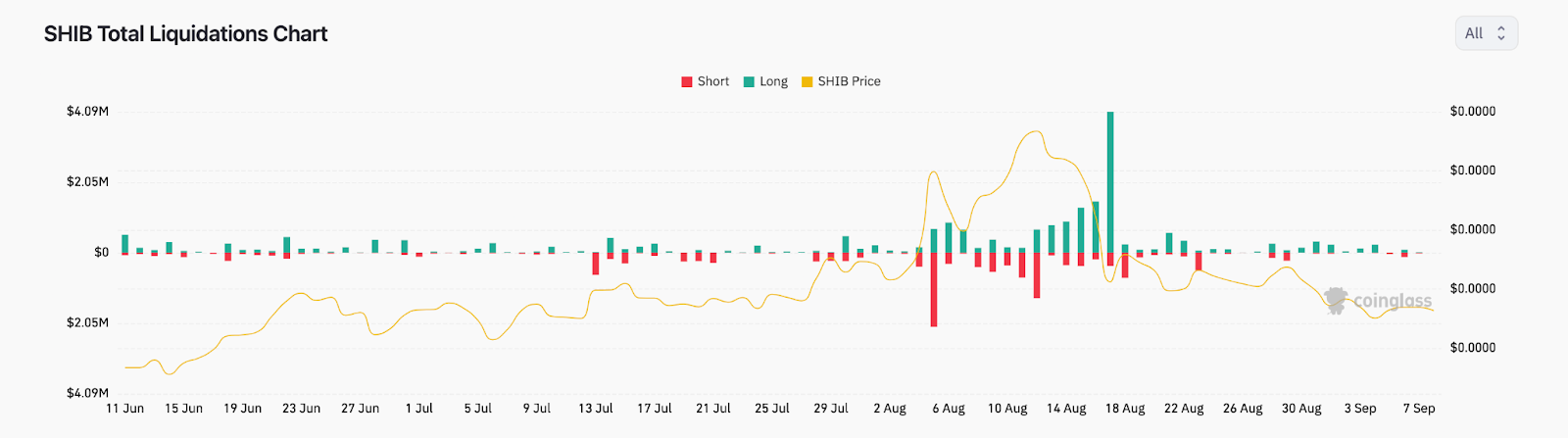Il y a notamment eu 1,04 million de dollars de liquidations de positions longues depuis le 31 août, ce qui est nettement plus élevé que les 254 000 dollars de liquidations de positions courtes. Cela montre que le trading à découvert reste la stratégie de trading dominante et la plus rentable sur les marchés à terme du SHIB.