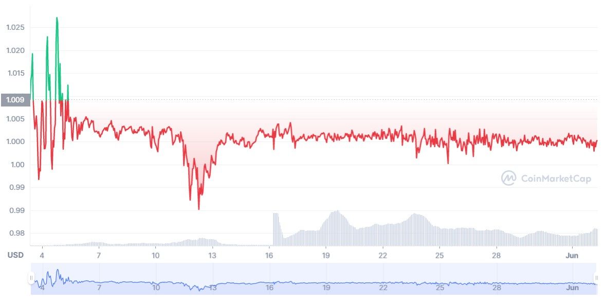 Pour autant, le stablecoin de TRON va-t-il connaître le même destin que Terra ? Les indicateurs semblent l’infirmer tant la blockchain se porte bien en ce moment. Tout en se fixant brièvement au dollar promis, le cours de l’USDD varie à l’image des autres stablecoins, Il se maintenant cependant de façon très honorable bien qu’une baisse constante se fasse déjà entrevoir.