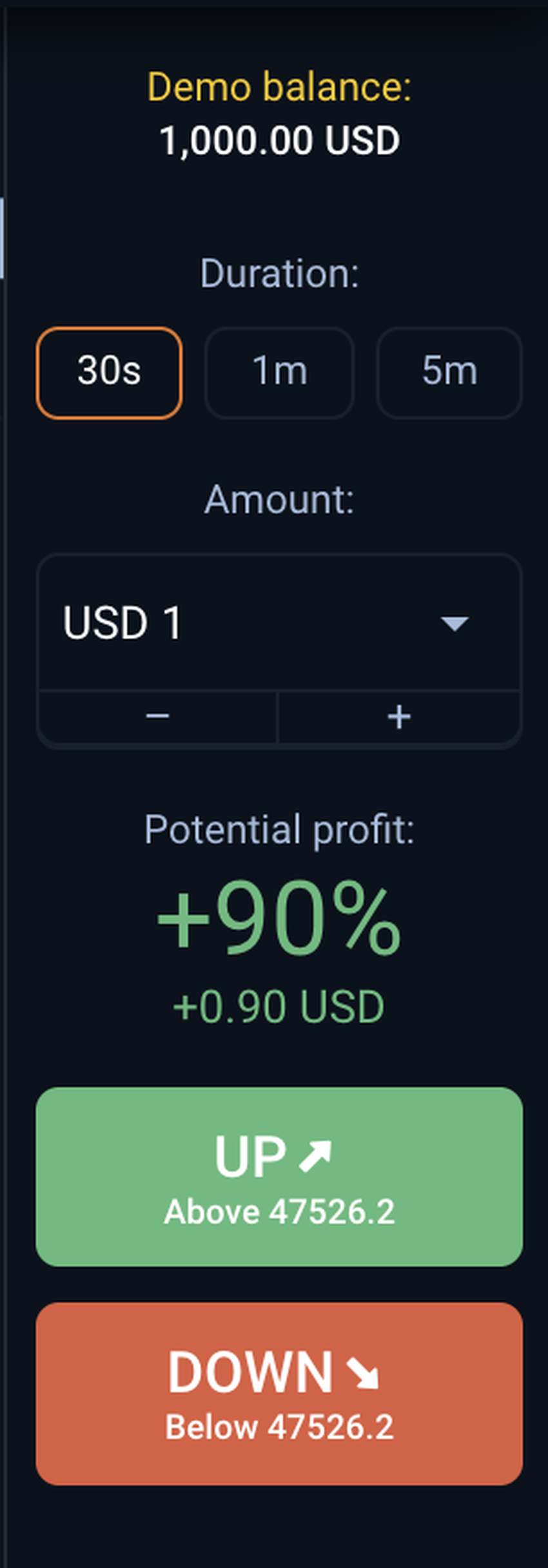Ensuite, la durée de la transaction doit être sélectionnée dans la partie droite de l’interface de la plateforme, sous l’icône de dépôt.