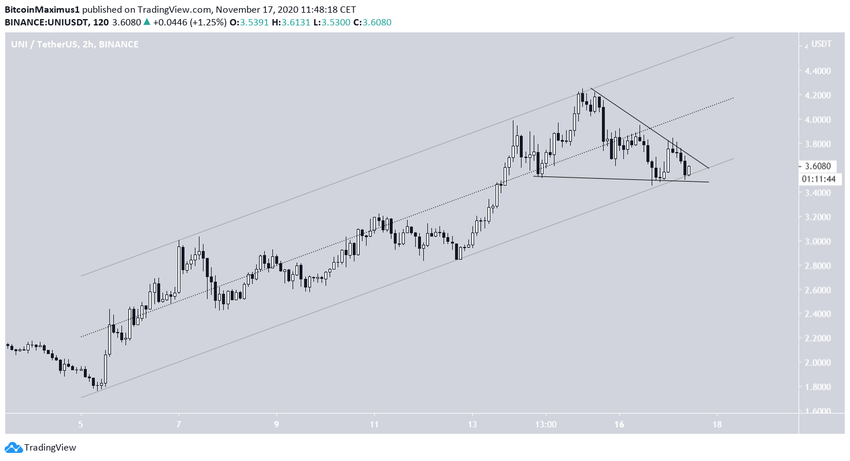 Le trader de cryptomonnaies @PostyXBT a tweeté un graphique de l’UNI, affirmant que tant que la zone de support des 3,60$ se maintient, le cours pourrait monter jusqu’à 4,65$.