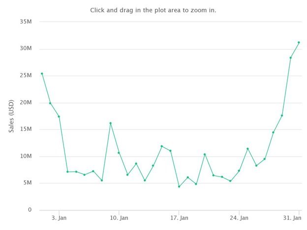 Après que Bitcoin (BTC), Ethereum (ETH) et plusieurs altcoins aient atteint de nouveaux sommets historiques en novembre 2021, le bear market a frappé l’ensemble du secteur. Par conséquent, les ventes mondiales de NFT sont passées de 2,82 milliards de dollars en novembre à 2,74 milliards de dollars en décembre.