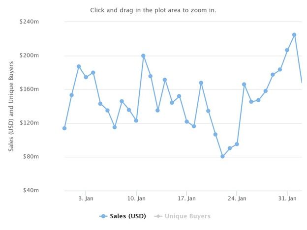 Alors que le nombre d’acheteurs uniques mensuels est resté inférieur à 300, le total des transactions n’a pas dépassé 600 depuis décembre 2021.